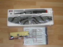 Darunter befinden sich dann noch die Ruder und Leitwerke, Kleinteile wie Ruderhörner, Klebeband und Anlenkungen, Verbindungsplatte, 2 Stk. Propeller (je nach Type mit Spinner), Ladekabel und schlussendlich noch der Motor die Montageanleitung und einige Decals, passend zur entsprechenden Type des Modells. Die Transportsicherheit ist in dieser Verpackung auch gegeben. Da zum ersten die einzelnen Teile fast nichts wiegen, um sich selbst Schaden zuzufügen, zum anderen Teil ist alles schön mit Klebeband gesichert.