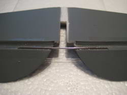Zu Beginn werden die Ruder an die Leitwerke geklebt (mit dem beigepackten Klebeband). Damit sitzen die Ruder fest und lassen sich auch leichtgängig bewegen. Bei der Thunderbolt müssen die beiden Höhenruder mit einem Drahtbügel (der natürlich auch beiliegt) verbunden werden. Hier fühle ich mich in meine „Revell-Zeit“ zurückversetzt. Meine großen Finger mögen diesen filigranen Bauschritt kaum bewerkstelligen. Auch das Seitenruder muss etwas ausgeschnitten werden um die Freigängigkeit des Höhenruders zu gewährleisten. Ist das erledigt werden die Ruderhörner eingeklebt. Hier wird ein kleiner Schlitz in die Ruder geschnitten und die Ruderhörner mit Epoxyharz eingeklebt (Ich habe hier Styrosekunden-kleber genommen).