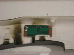 Wenden wir uns dem Rumpf zu. Als erstes wird die ebenfalls beiliegende „ Verbindungsplatte“ eingebaut. Das ist eine kleine Leiterplatte mit aufgelötetem Schalter und Ladebuchse. Diese wird direkt in die dafür vorgesehene Rumpfhälfte geklebt. Daran werden dann der Regler und der Akku direkt angelötet (wer das nicht möchte kann auch noch kleine Stecker in die Verbindungen einfügen, Platz ist im Rumpf genug vorhanden).